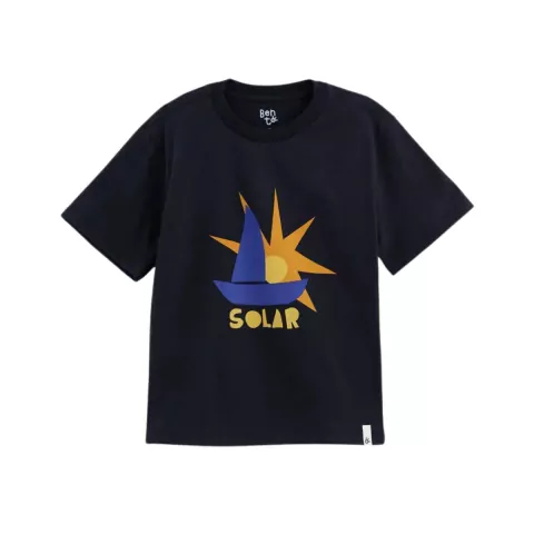 Camiseta Bento Fábula Barco Solar Preto Silk Verão