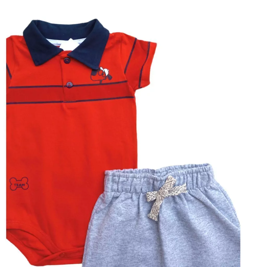 Conjunto By Gus Cachorrinho Cinza C/ Bermuda Saroel