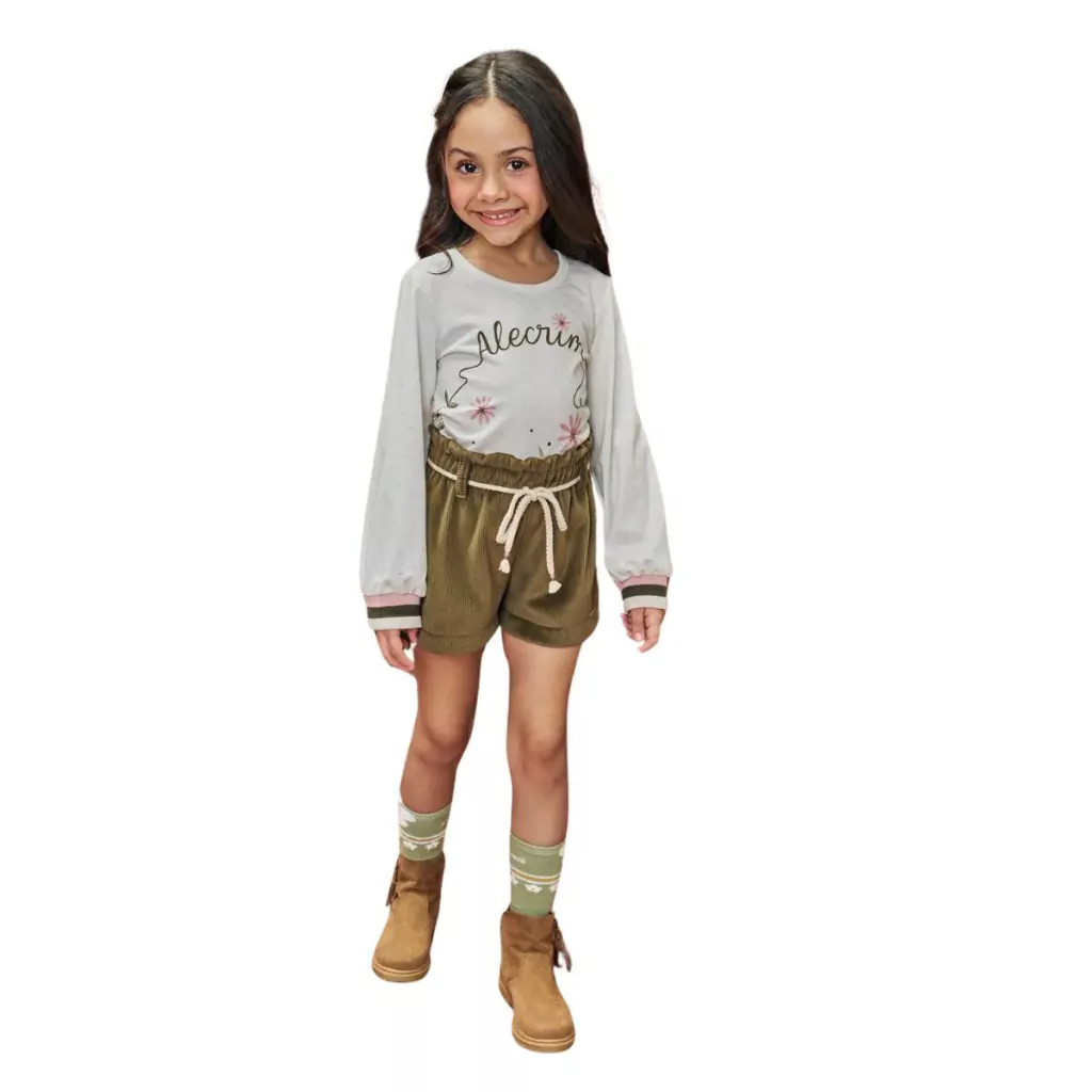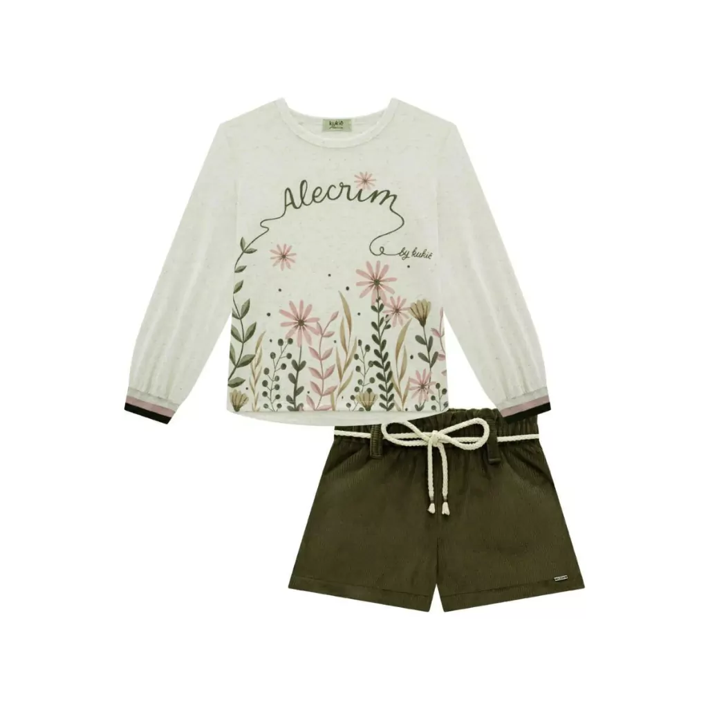 Conjunto Kukiê Blusa em Malha e Shorts Verde Escuro Inverno
