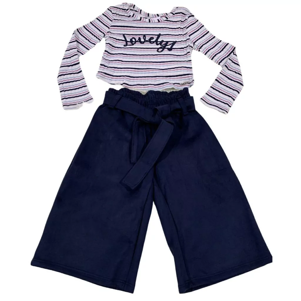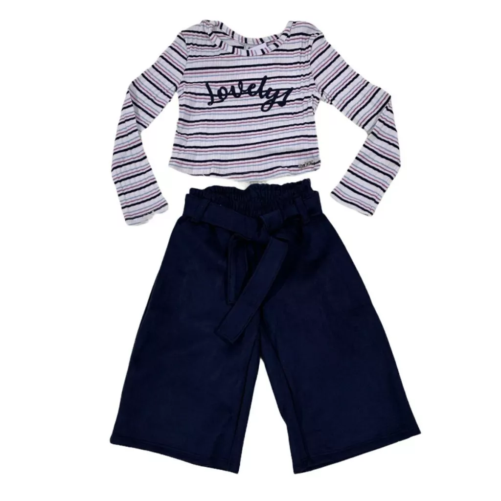 Conjunto KukIê Cropped Calça Listras Coleção Inverno é formado por um cropped de listras e uma calça completando o look super estiloso.