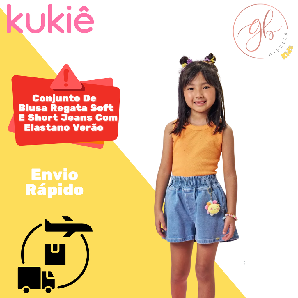 O Conjunto Kukiê de Blusa em Soft e Short Jeans Laranja é perfeito para meninas que gostam de conforto sem abrir mão do charme.