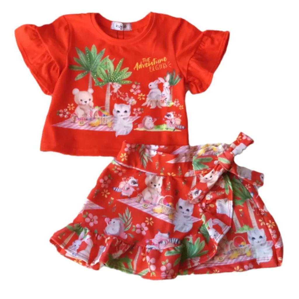 Detalhes do Produto: Conjunto Infantil Kukiê; Manga Larguinha; Estampa De Bichinhos; Short; Cós Grosso; Soltinho;