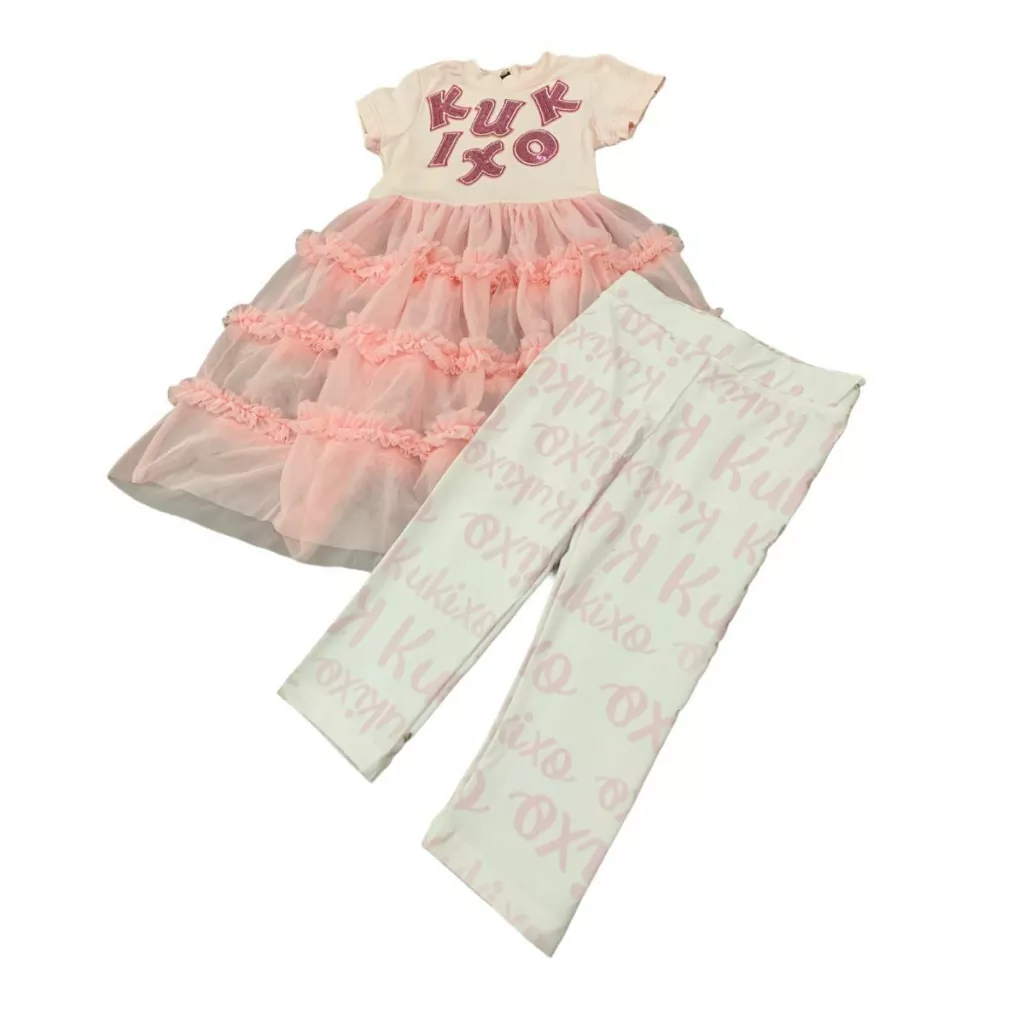 Conjunto blusão e legging combinação no estilo princesa moderna. Blusa mais comprida de tule com babadinhos e bordado digital de letras em lantejoula rosa. A legging confeccionada em malha muito confortável traz a modernidade no comprimento cropped que é uma das tendências de moda do momento.