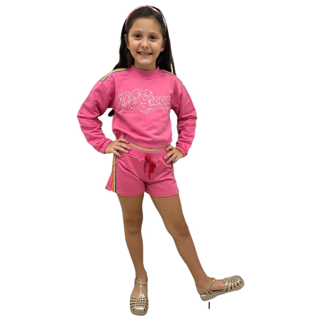 O Conjunto Infantil da Coleção de Outono/Inverno está na GiBella Kids É confeccionado em malha, possui mangas Longas, escrita na parte da frente e um arco íris no ombro que confere um toque iluminado a peça. O Short do Conjunto Infantil Menina é confeccionada também em malha e com arco-íris na parte do lado, o short possui cós com elástico flexível e resistente.
