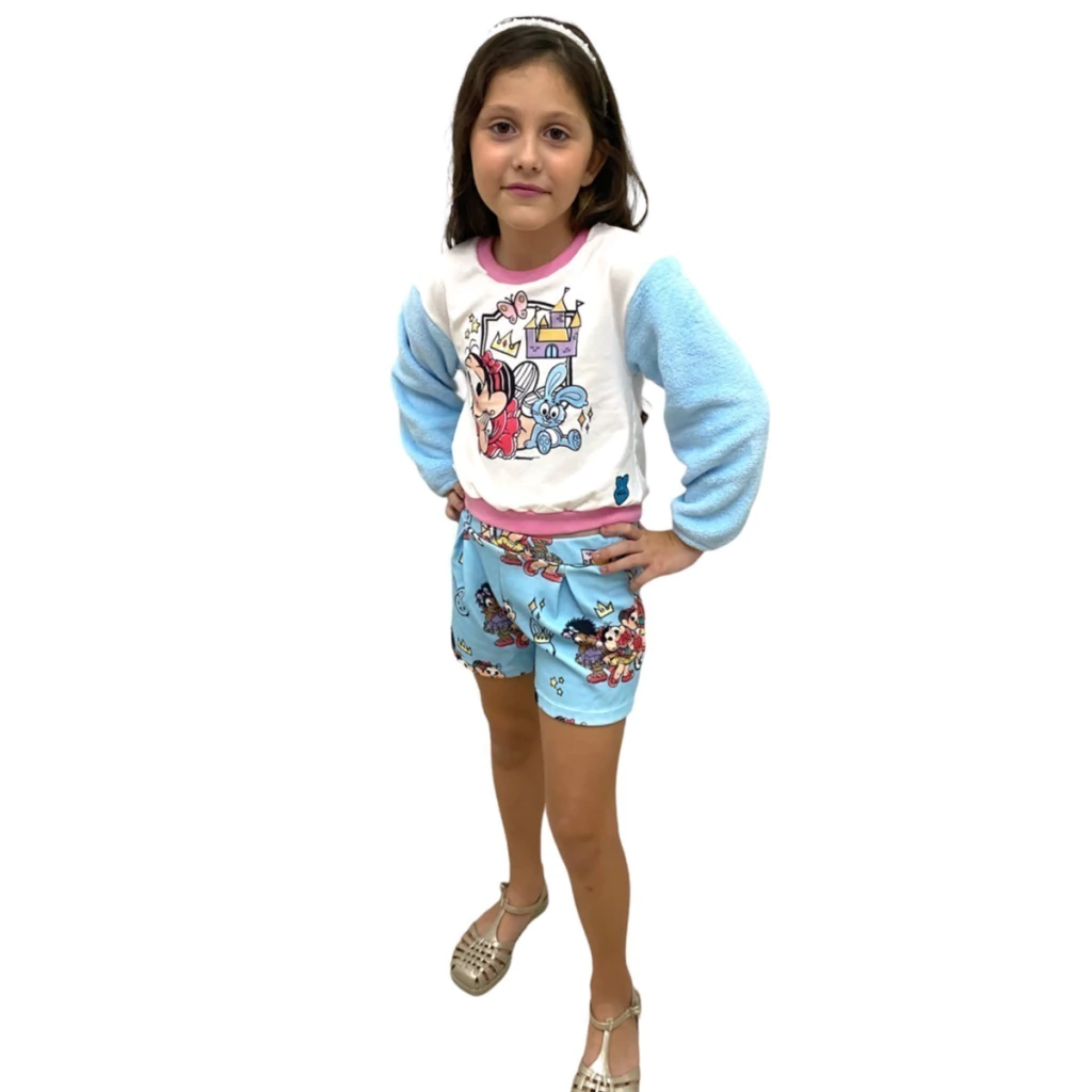 Detalhes do Produto: Conjunto Infantil Mon Sucré; Manga Longa; Manga Em Fleece; Estampa Da Mônica De Coroa; Short; Cós Grosso; Estampa De Menininhas;