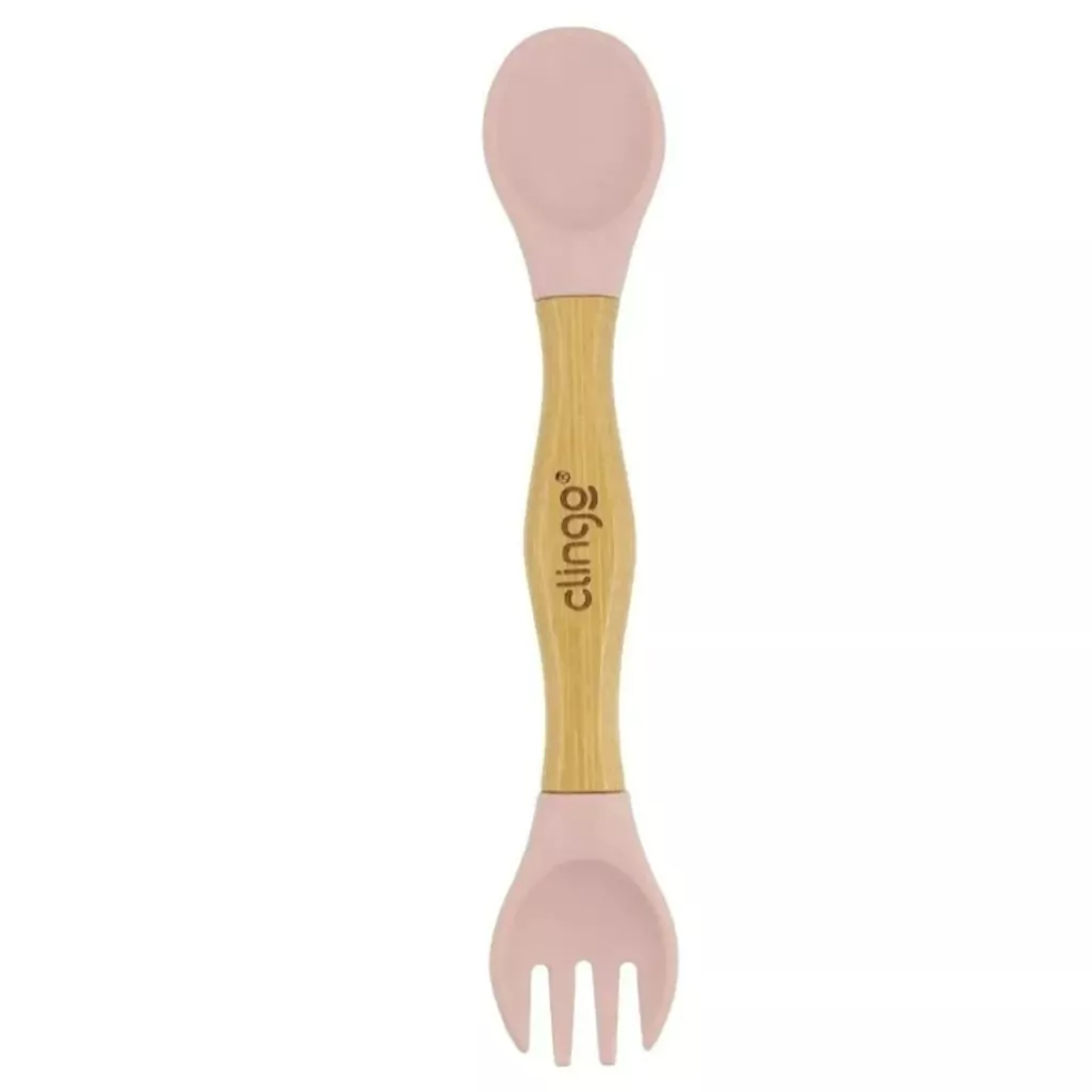 Talher Duplo de Bambu e Silicone Rosa Clingo