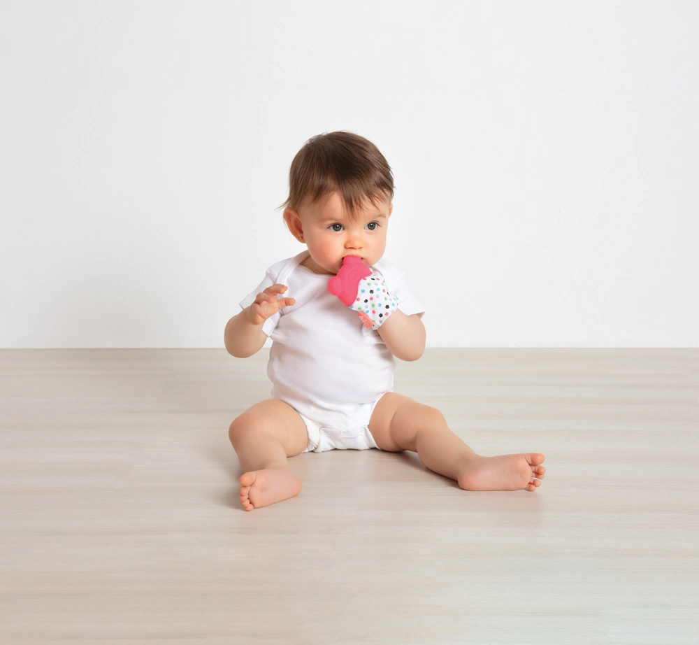 O uso das luvinhas é super recomendado para bebês! Além de acalmar as dores na hora de morder e massagear as gengivas, acabam treinando e fortalecendo a musculatura necessária para a mastigação.