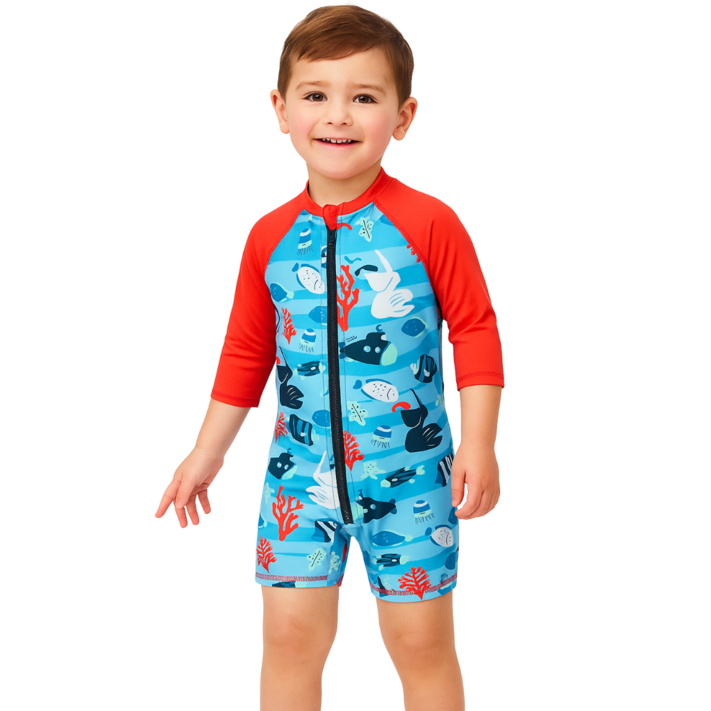 Invista em uma peça que oferece estilo, conforto e proteção real para o seu filho. Compre agora o Macacão Luc.Boo UV 50+ Estampa Peixinhos – Vermelho e aproveite cada momento de sol com tranquilidade! 🌞🐟