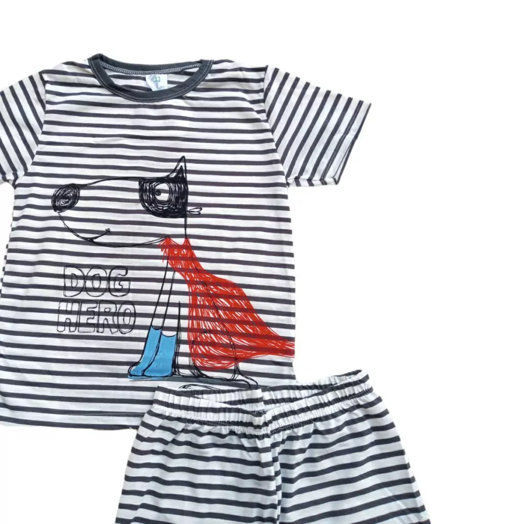 Detalhes do Produto: Pijaminha; Meia Manga; Estampa De Cachorrinho; Listras; Short; Cós Grosso; Com Listras;