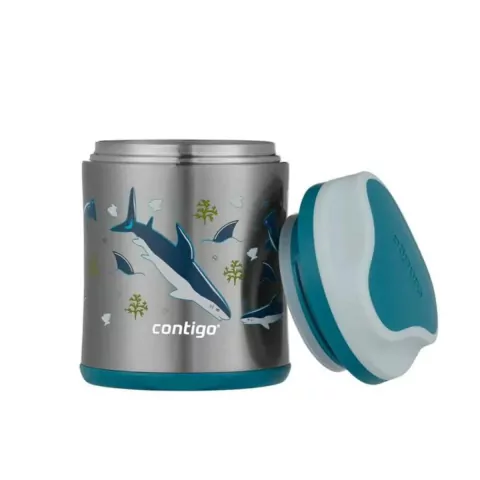 Com o Pote Térmico Tubarão da Contigo, você terá alimentos frescos a qualquer momento! Mantenha a sopa, macarrão, frutas e vegetais frescos e saborosos por horas neste pote de aço inoxidável. Seu design colorido adiciona alegria à experiência das crianças de poder comer em ambientes internos e externos. O pote é isolado a vácuo e mantém os almoços quentes ou frios por horas. A base antiderrapante se fixa em tampos de mesa, mantendo a comida segura e protegida contra vazamentos e quedas. A manutenção e a limpeza são muito fáceis com a tampa e o corpo adequados para irem a parte superior da máquina de lavar louça.