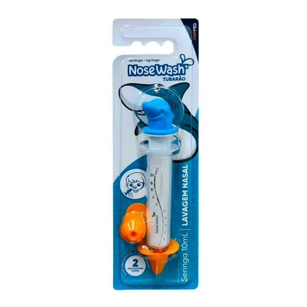 NoseWash é o primeiro dispositivo desenvolvido e fabricado no Brasil especialmente para lavagem nasal. Com uma proposta inovadora, NoseWash contém personagens lúdicos em miniatura no próprio dispositivo, além de 2 adaptadores nasais que protegem o nariz. Cada adaptador nasal possui formato especifico, trazendo opções para maior conforto e segurança de uso. A escolha sobre qual adaptador utilizar varia de acordo com a anatomia nasal, indicação e finalidade de uso.